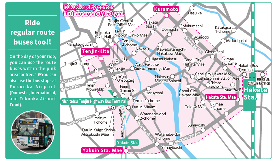 ※請於預定發車時間的20分鐘前至福岡市役所內乘車券櫃檯購買乘車券。